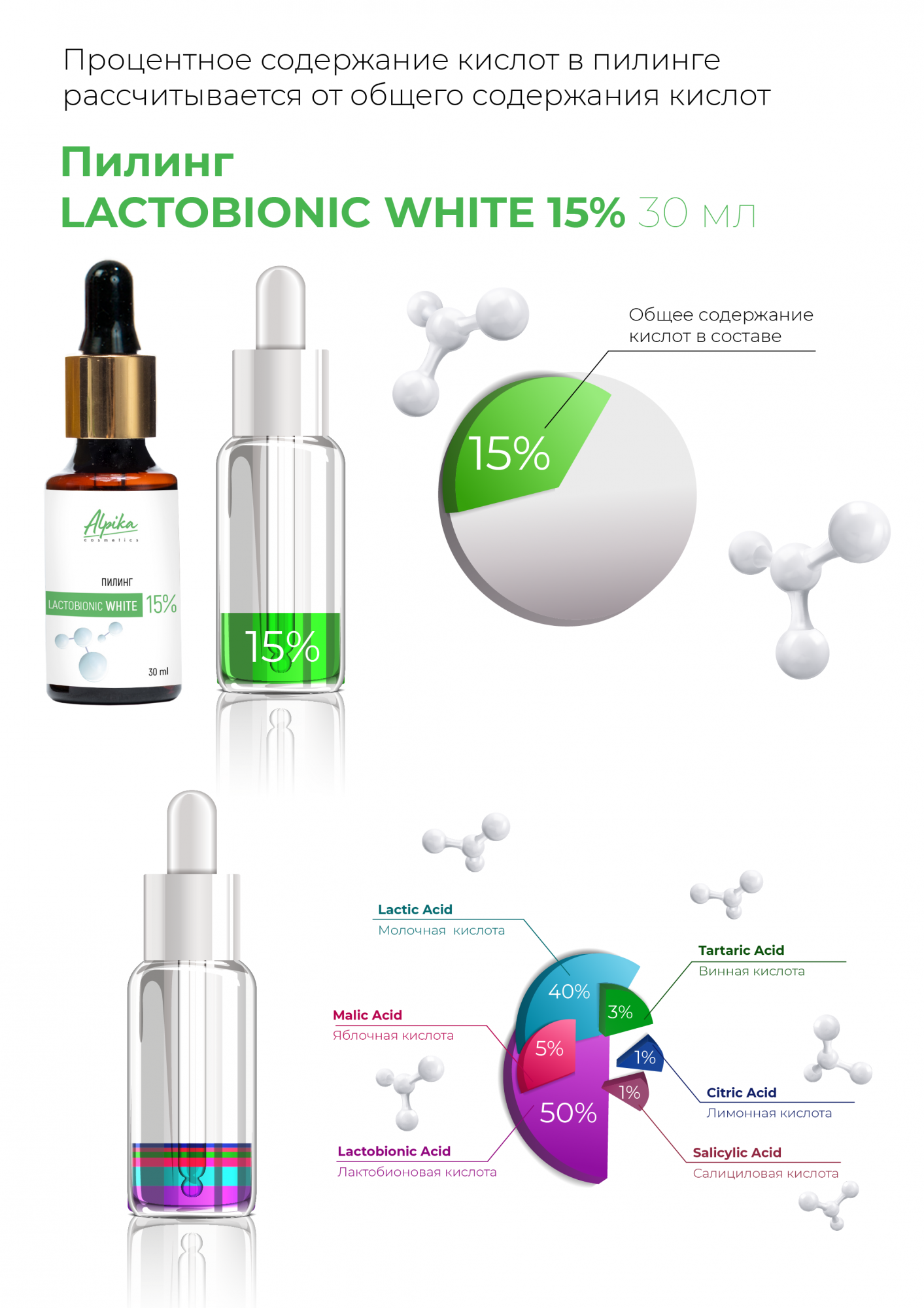 Aqua, Lactobionic Acid; Lactic Acid; Malic Acid; Tartaric Acid; Citric Acid; Salicylic Acid. Общее содержание кислот 15%, в том числе: Lactobionic Acid 50%; Lactic Acid 40%; Malic Acid 5%; Tartaric Acid 3%; Citric Acid 1%; Salicylic Acid 1%.